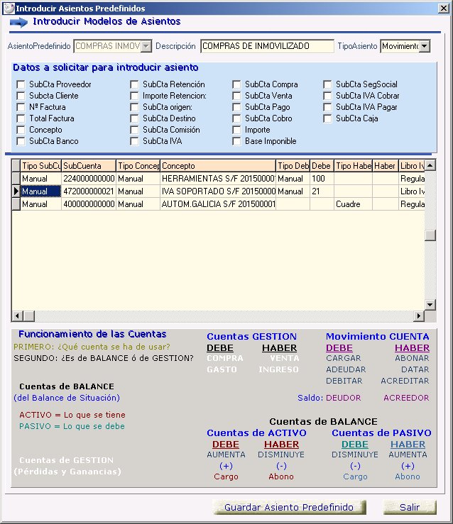 de manera, que con solo poner los importes solicitados el asiento queda rellenado automáticamente y sin posibilidad de errores. El asiento de la